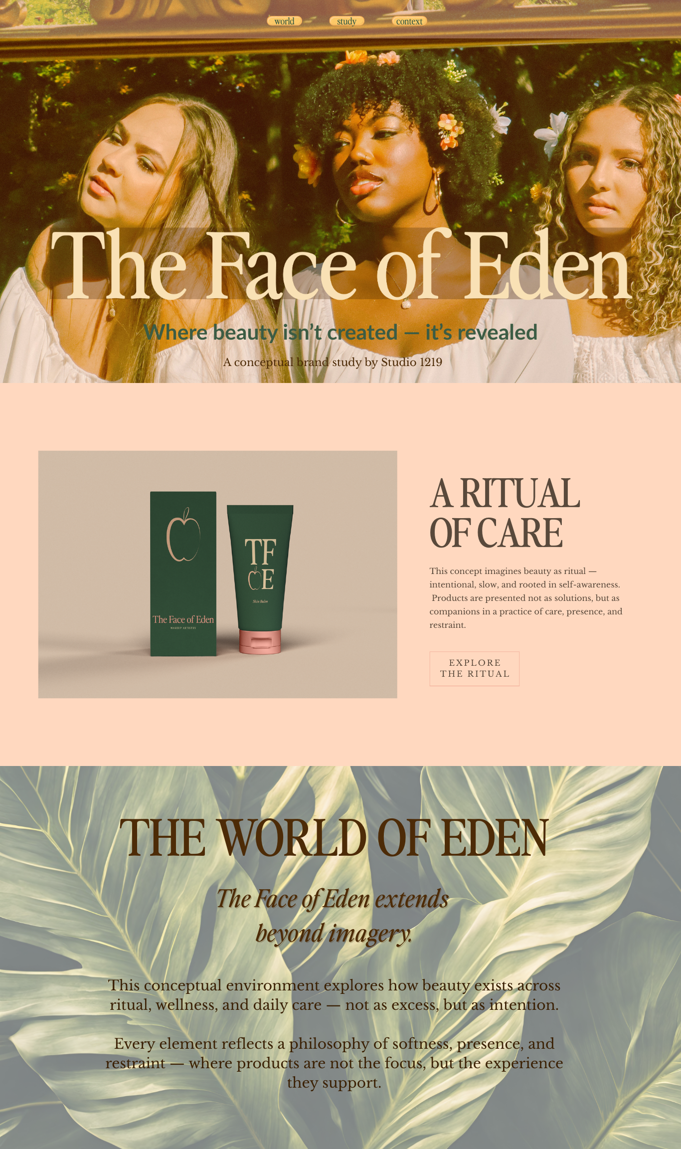 The Face of Eden was developed as a conceptual beauty brand rooted in femininity, softness, and strength. The goal was to explore beauty as presence — not performance — and to create a visual world that felt timeless, intentional, and quietly powerful.